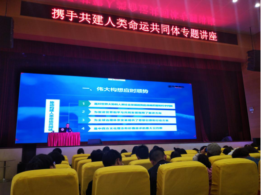 2020年11月26日,学校副校长李树伟在大礼堂为我校2018级、2019级、2020级大学生讲题为“携手构建人类命运共同体”的形势与政策专题课。
