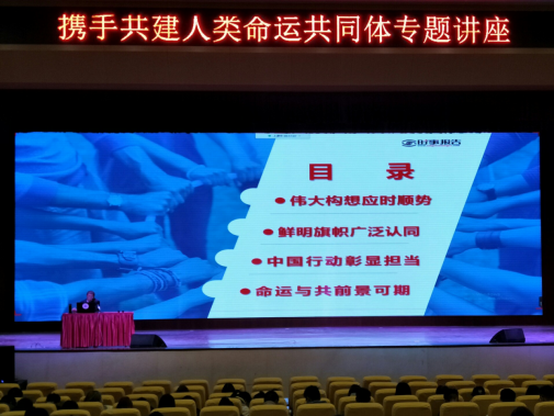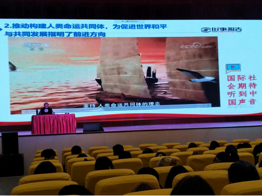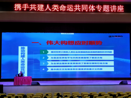 为深入学习贯彻习近平新时代中国特色社会主义思想,2020年12月3日晚在大礼堂,思想政治理论课教学部黄稳书老师为我校2018级、2019级、2020级全体大学生作主题为“携手构建人类命运共同体”的形势与政策专题报告。