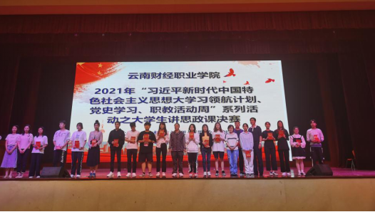 为庆祝中国共产党成立100周年,深入贯彻落实习近平总书记关于深化思想政治理论课改革创新和加强“四史”教育的重要指示精神,展现财职学子积极向上的精神风貌和德智体美全面发展的素质风采。云顶yd222线路检测2021年“习近平新时代中国特色社会主义思想大学习领航计划、党史学习、职教活动周”系列活动之大学生讲思政课决赛于5月28日下午在学校大礼堂圆满落下帷幕。