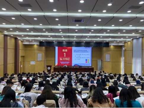 2021年9月23日下午,学校副院长严黄一仪同志在图书馆报告厅,为我校会计学院、经济学院2019级400多名学生上了一堂题为“正确认识我国人口问题”的形势与政策课。