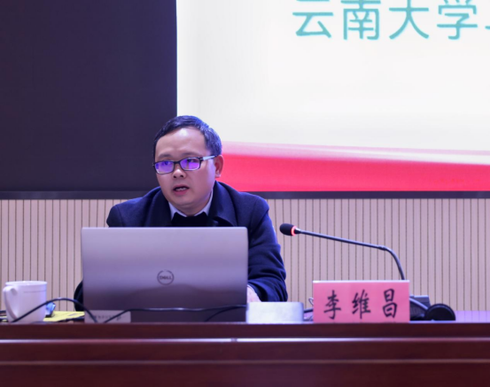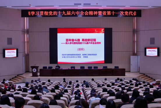 党的十九届六中全会是在我们党成立一百年之际,党领导人民实现第一个百年奋斗目标,向着实现第二个百年奋斗目标迈进的重大历史关头召开的会议。为深入学习贯彻党的十九届六中全会精神,贯彻落实省第十一次党代会会议精神,2021年12月20日由思政部组织全校开展,特邀云南大学马克思主义学院副院长博士生导师李维昌教授作专题宣讲。学校党委副书记仲新主持报告会。