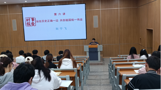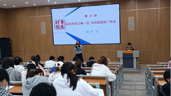 2022年5月24日,刘宁飞副校长在体育馆阶梯教室为我校信息工程学院130多名大学生讲授题为“站在历史正确一边,共创祖国统一大业”形势与政策专题课。