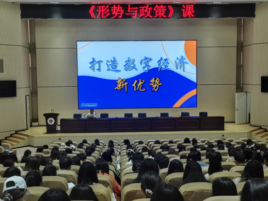 2022年6月16日晚19:00——20:20,我校副校长严黄一仪老师在学校新报告厅为我校2020级300多名大学生上“打造数字经济新优势”形势与政策专题课。