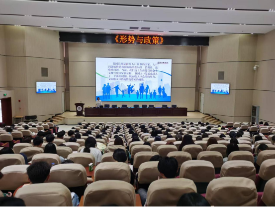 2025年5月8日晚,沈豫琼副校长为我校7个教学班级近360余名学生讲授题为《以人口高质量发展支撑中国式现代化》的形势与政策课。