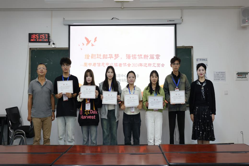 迎新会上,陆卫东老师热烈欢迎读者协会新会员的到来,希望新一届读者协会团结一致,齐心协力,勤奋工作,服务读者,做出成绩,创造辉煌。读者协会指导教师米雪对上一届优秀干部、优秀会员进行颁奖,并对现任干部颁发聘书。希望读者协会会员在下一阶段的工作中继续发扬优良作风,积极参与到各项活动中来,加强学习,提高修养,明确职责,不辱使命,用汗水浇灌梦想,绽放青春奋斗的绚丽之花。