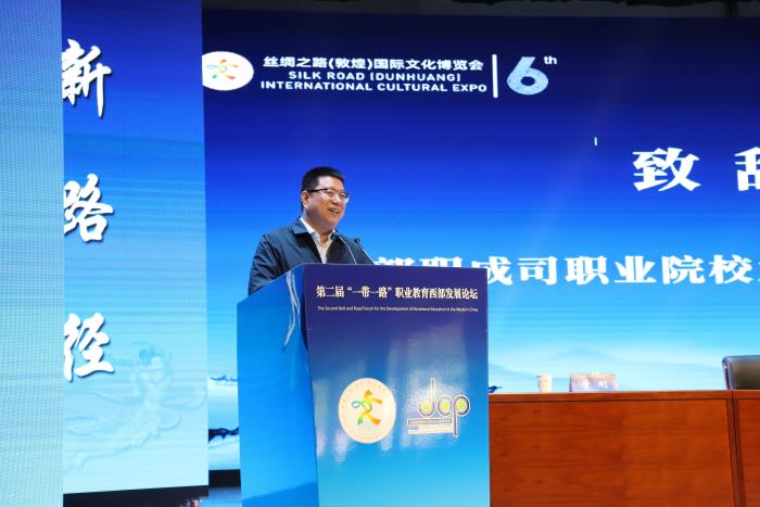 为贯彻落实《关于深化现代职业教育体系建设改革的意见》,打造职业教育国际合作新平台,探讨职业教育服务“一带一路”的新路径、新方式,彰显职业教育服务“一带一路”的功能和特色,提升东中西部高职院校协同服务“一带一路”能力,2023年9月24日-9月27日,第二届“一带一路”职业教育西部发展论坛在酒泉职业技术学院举行。中国职业技术教育学会常务副会长王扬南、教育部职业教育与成人教育司职业院校发展处处长任占营、甘肃省教育厅副厅长白江平、酒泉市人民政府副市长陈国喜、甘肃省职业与成人教育协会会长时宁国、酒泉职业技术学院党委书记、校长易志军等嘉宾出席论坛。全国高等职业学校校长联席会议主席董刚主持。